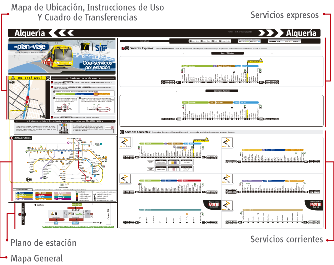 El mapa de rutas alimentadoras se encuentra en los portales y estaciones intermedias donde se presta este servicio. En el podrá ver los recorridos de todas las rutas con sus respectivas direcciones de paraderos y horarios de operación.