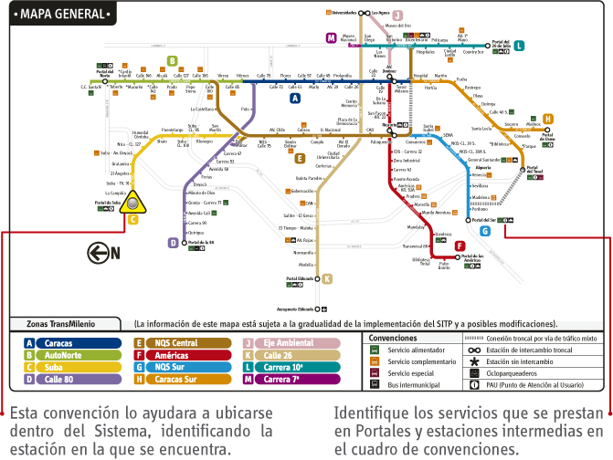 Tenga en cuenta el cuadro de convenciones, así podrá identificar los servicios que presta cada portal y/o estación intermedia