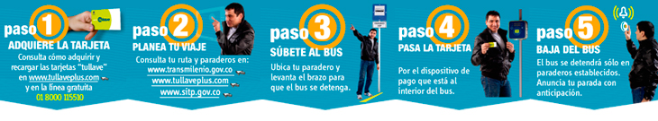 Los usuarios de estas rutas deberán tener en cuenta los cinco pasos para el uso del SITP: