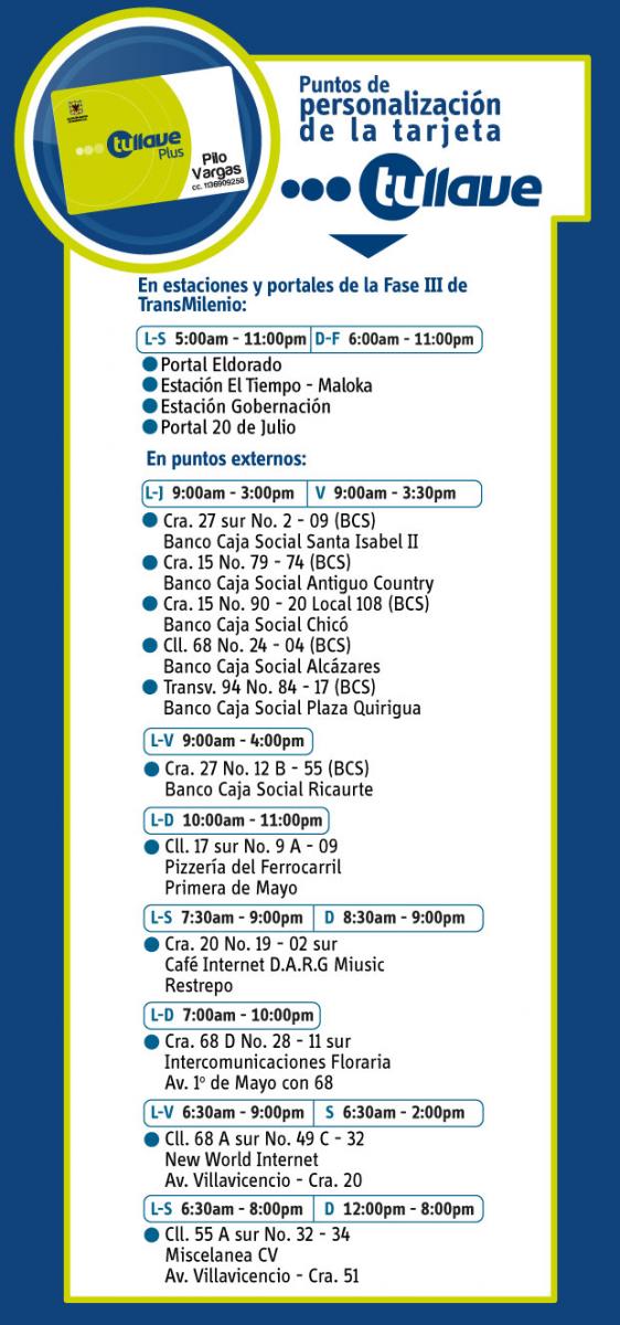 CONOZCA LOS PUNTOS DE PERSONALIZACION DE LAS TARJETAS "TULLAVE"