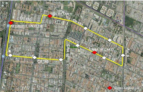 El servicio tendrá un nuevo trazado que se extiende hasta la Estación de la Calle 146. Contará contres nuevos paraderos: en la Autopista Norte con Calle 150, en la Calle 151 con carrera 17 y en la calle 147 con carrera 12. De la anterior ruta se elimina el paradero No.1. ubicado en la calle 147 No. 17 ? 42.