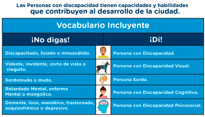Infografía donde se indica como debe decirle a una persona con Discapacidad