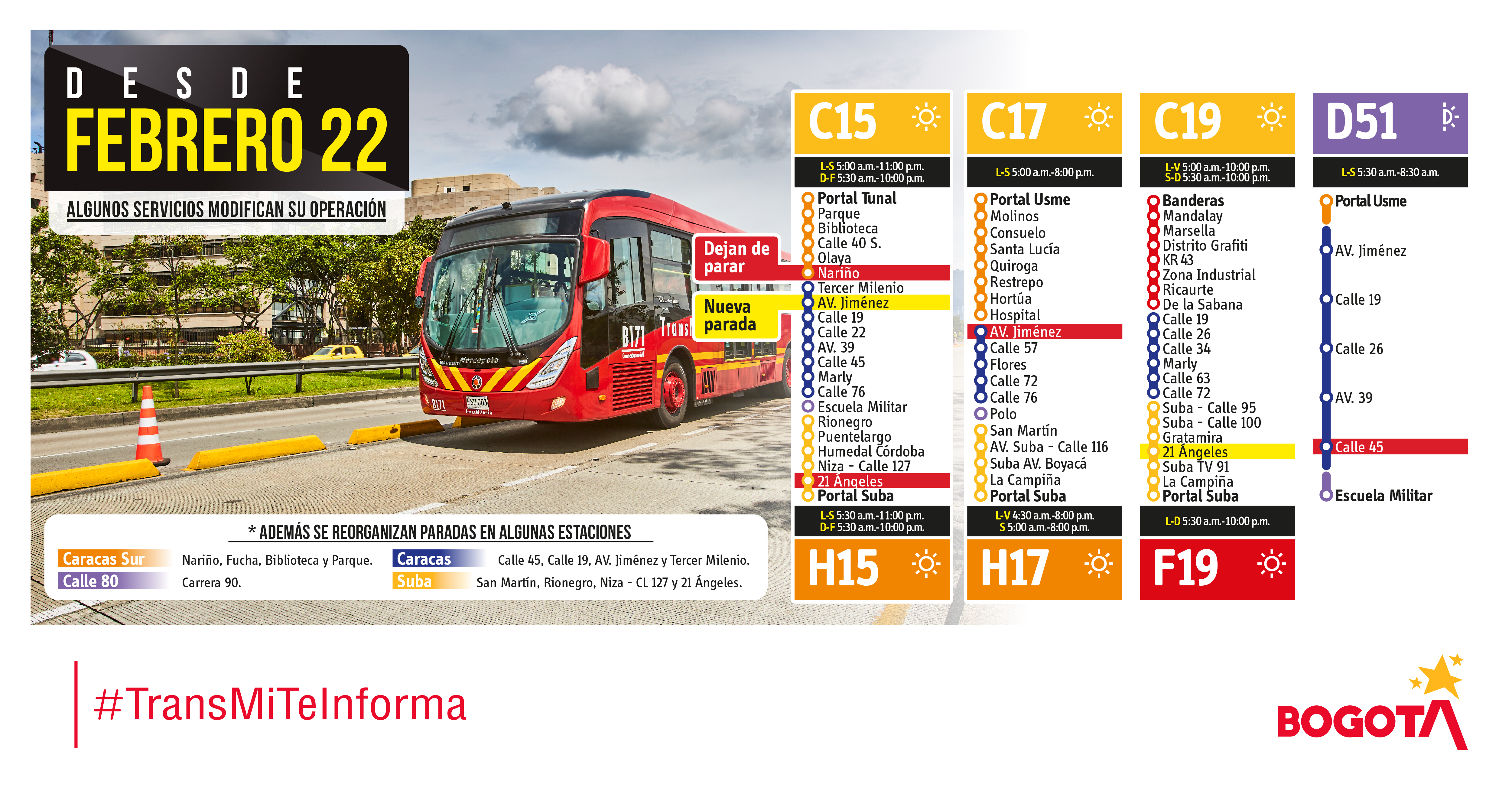 Adicional se reorganizan las paradas en las siguientes estaciones: