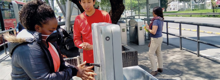 Estos lavamanos portátiles se suman a los 134 espacios fijos ubicados dentro de los baños de los 9 portales de TransMilenio y que son de uso gratuito.