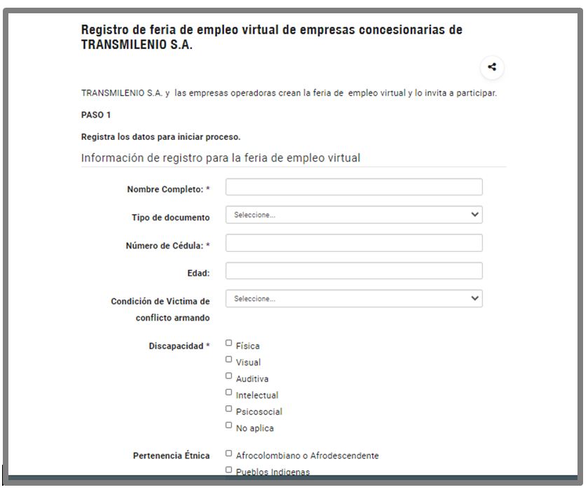 1. Ingresar al link de la Feria de empleo virtual de TRANSMILENIO y las empresas operadoras.