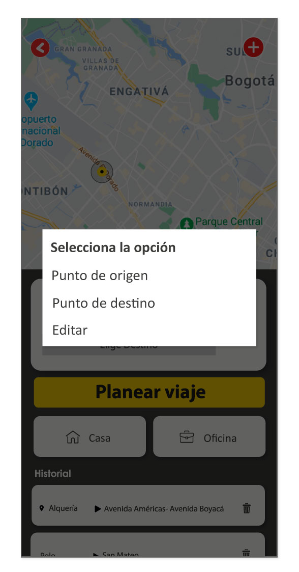 • Planeación interactiva del viaje eligiendo el origen y destino.