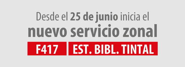 Desde el próximo sábado 25 de junio de 2022 iniciará operación una nueva ruta zonal que conecta la estación Biblioteca Tintal y Tierra Buena. La ruta se denomina F417 Estación Biblioteca Tintal y transita por la Calle 26 sur pasando por Ipanema, Calandaima, Patio Bonito y Tierra Buena.