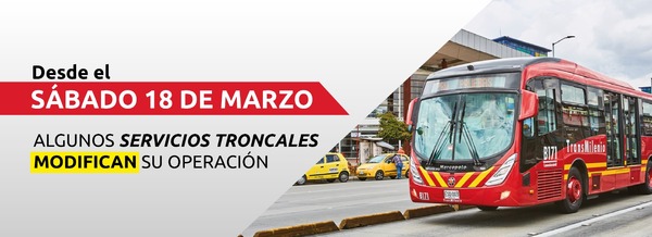 A partir del sábado 18 de marzo, los servicios B75 y H75 cambian su tipología a BiarticuladoPalabra con contexto: Bus de alta capacidad que cuenta con tres (3) cuerpos o vagones y dos (2) articulaciones. La capacidad de los buses puede ser de hasta doscientos cincuenta (250) pasajeros, dependiendo de su configuración pueden tener una longitud de hasta veintiocho (28) metros de largo y su peso debe cumplir con lo establecido en la Norma Técnica ICONTEC NTC 4901-01 actualizada. con mayor capacidad, reorganizando los puntos de paradas en los siguientes portales y estaciones: