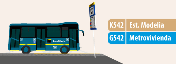 Desde el lunes 22 de julio, la ruta T38 Metrovivienda - Estación Modelia, cambia de nombre y pasa a llamarse K542 Modelia - G542 Metrovivienda, modificando su recorrido en el sector de Patio Bonito. Ahora tomará la avenida Guayacanes desde la calle 49 sur hasta Tintala para tomar luego la avenida Ciudad de Cali hasta la calle 52A en Modelia.