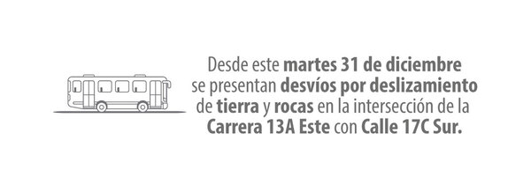 Desde el 31 de diciembre, por deslizamiento de tierra en la carrera 13A Este con Calle 17C sur, las siguientes rutas de TransMiZonal presentan novedad.