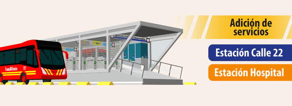Por mejoras en la operación debido al cierre de la estación Calle 19 por obras del Metro de Bogotá, en las estaciones Calle 22 y Hospital habrán las siguientes rutas adicionales: