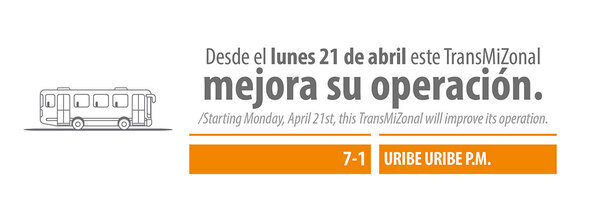 Desde el 21 de abril de 2025, el servicio 7-1 Uribe Uribe P.M. tendra novedad en la calle 44 Sur en el paradero IED Enrique Olaya Herrera (072A12), omitiendo su parada.