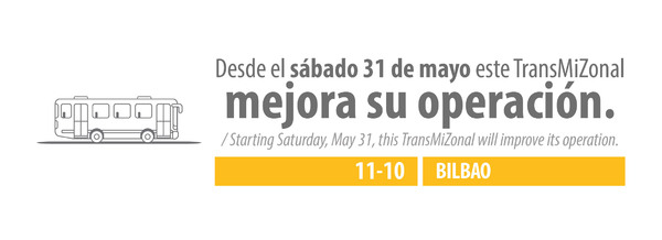 Desde el 31 de mayo, el servicio TransMiZonal 11-10 Bilbao tendrá dos nuevas paradas sobre la calle 144 en el sector de Bilbao. Las dos paradas serán en la calle 144 con carrera 147A y carrera 142.
