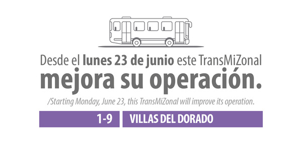 Desde el lunes 23 de junio, el servicio TransMiZonal 1-9 Villas del Dorado, modifica su operación en el sector del Garcés Navas, dejando de operar por la carrera 107 desde la calle 80 hasta la calle 72.