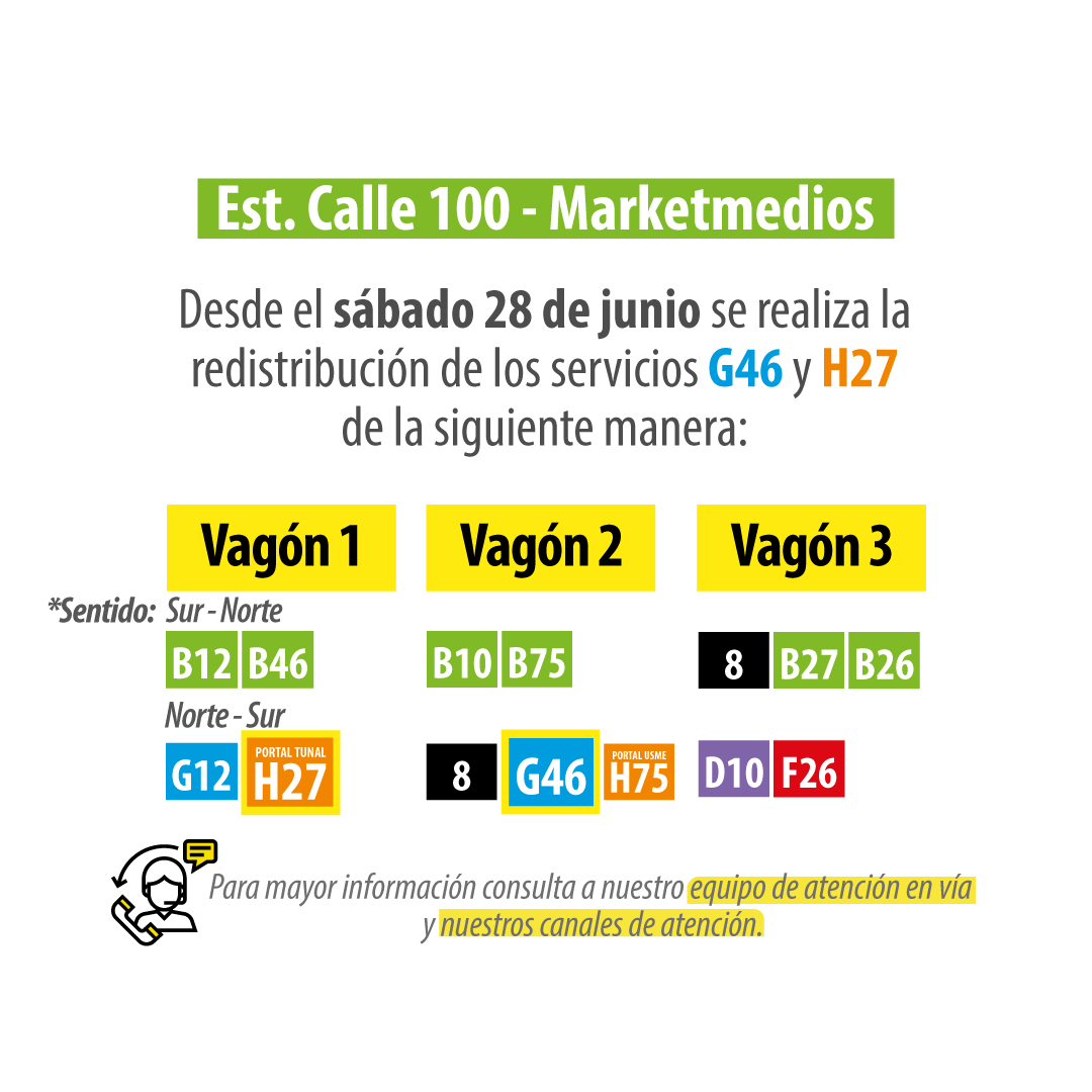 En la estación Calle 100 Market medios, redistribuye paradas de los servicios G46 y H27 quedando de la siguiente manera: