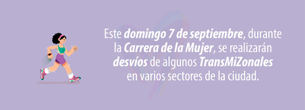 Por el desarrollo de la Carrera de la Mujer, que se realizará este domingo 7 de septiembre, rutas zonales tendrán desvíos, principalmente en la Avenida NQS y Calle 63 entre la Avenida El Dorado y Autopista Norte.