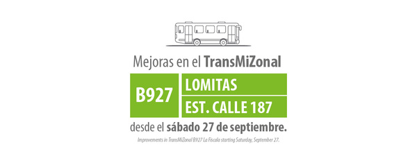 A partir del 27 de septiembre, el servicio TransMiZonal B927 ajusta su trazado teniendo un nuevo recorrido por la calle 183 y pasa a llamarse B927 Lomitas - B927 Esatción Calle 187.