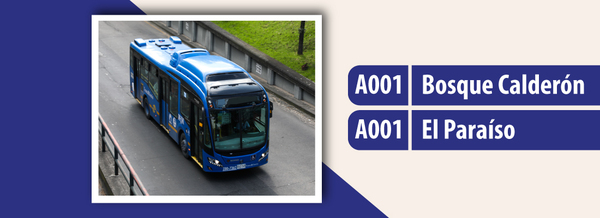 Desde el 19 de octubre, el servicio TransMiZonal A001 Bosque Calderón - El Paraíso, modifica sus horarios los domingos y festivos, teniendo despachos fijos por hora desde las 5 a.m. hasta las 9:00 p.m.