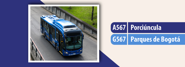 A partir del 27 de octubre, el servicio TransMiZonal 367 modifica su nombre a A567 Porciúncula - G567 Parques de Bogotá, modificando su recorrido en tres puntos de trazado.